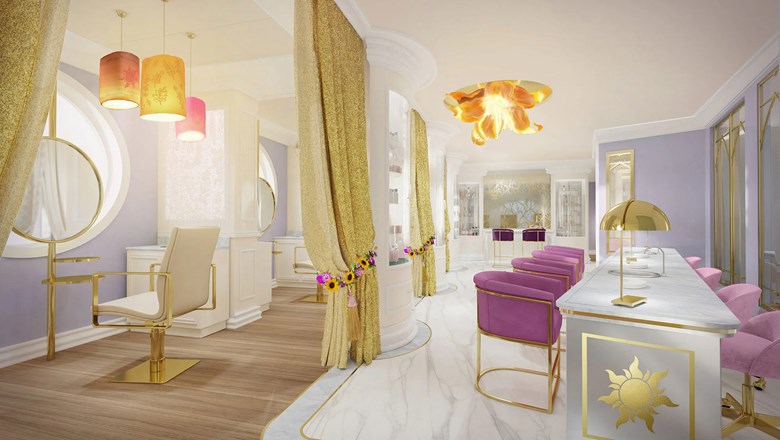 The Wish will have two new salon experiences: Untangled Salon, inspired by Rapunzel and decorated with floating lantern light fixtures and privacy screens depicting Rapunzel's paintings. Untangled will do haircuts and styling, manicures, pedicures, teeth whitening and skin treatments.