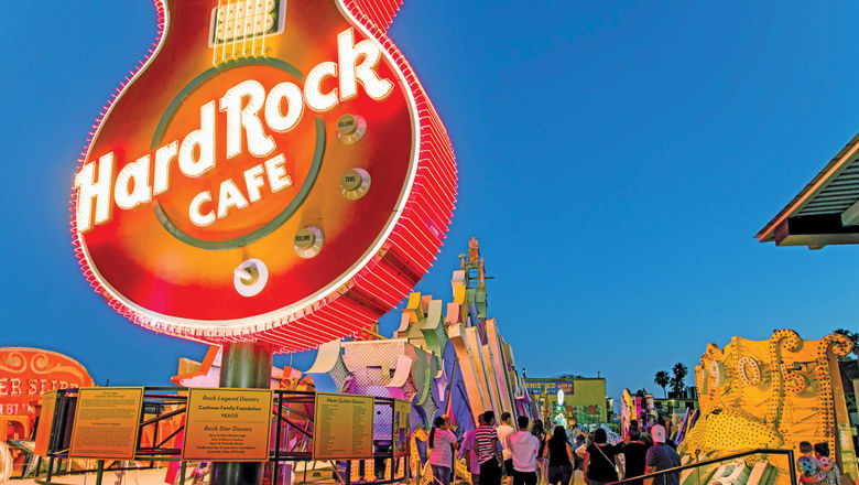 In the neon's glow, docents lead 45-minute walking tours nightly. They concisely put the signs into the context of the city and the times. They share stories about notable personalities, such as casino owner Benny Binion (the Horseshoe) and the Moulin Rouge's role in the civil rights movement; the hotel was the city's first integrated resort when it opened in 1955.
